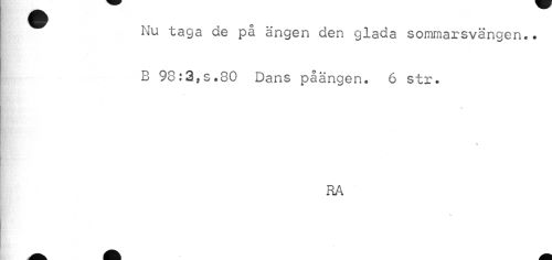 //// ^ Nu taga de på ängen den glada sommarsvängen». //// B 98:3*s.30 Dans påängen. 6 str. //// » //// ra //// X ////