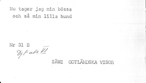 //// Nu tager jag min bössa , //// och så min lilla hund //// i //// Nr 31 B __! //// SÄWE GOTLÄNDSKA VISOR //// ? //// « t ////