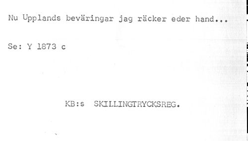 //// I //// Nu Upplands beväringar jag räcker eder hand... r //// ; i « • ¦¦ -V //// • ' i i //// Se: Y 1873 c j //// i ¦ //// i //// i //// L //// r //// KB:s SKILLINGTRYCKSREG. //// i ////