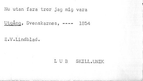 //// I //// Nu utan fara tror jag mig vara j //// i //// Utgång, Svenskarnesf - 1854 //// i //// E.V.Lindblad. //// L U B SKILL.UNIK //// i //// i i //// J //// .S. _ r^ -w____*. .... _____. . v___ -v „.»...,. _ -__r—,.. . _ ... . . _ . ____ _____. //// /