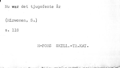 //// Nu war det tjugofemte år //// (Hirwonen, S.) s. 118 //// H-FORS SKILL. -TR.KAT« //// •t t •. 4 . . St. t ..< i" — _ / ' * .v—"TTt ////