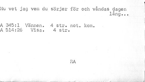 //// I- //// iu vet jag vem du sörjer för och våndas dagen //// lång... //// \ 345:1 Vännen. 4 str. not. kom. \ 514:26 Visa. 4 str. //// RA //// -------. ____... .W-—. ____... ////