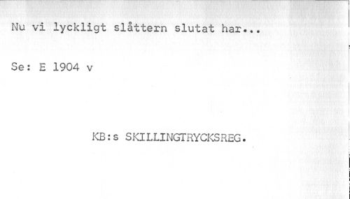 //// Nu vi lyckligt slåttern slutat har... Se: E 1904 v //// r //// KB:s SKlLLINGTRYCKSREG. //// i //// -¦ //// I //// i ¦ //// ¦ ¦ //// s //// c //// I ////