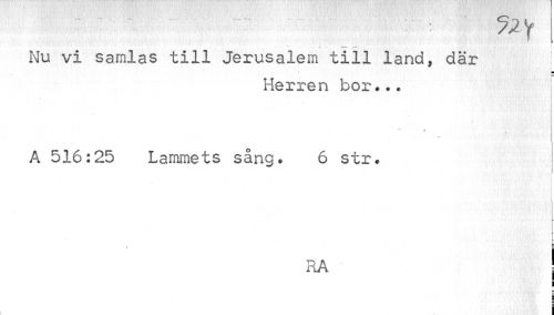 //// Nu vi samlas till Jerusalem till land, där //// Herren bor... //// Ä //// " ' %: //// A 516:25 Lammets sång. 6 str. i //// i //// f //// RA ! //// i ! ////