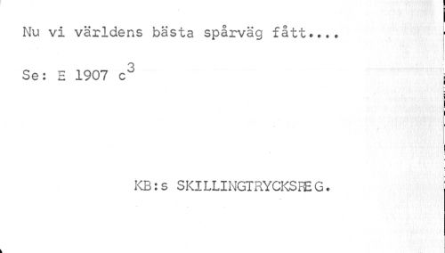 //// I //// Nu vi världens bästa spårväg fått.... //// i //// Se: E 1907 c3 ; //// I ¦ //// r i //// i //// KB:s SKILLINGTRYCKSFEG. ////
