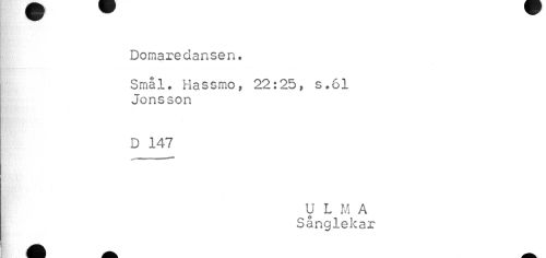 //// Domaredansen. //// Smål. Hassmo, 22:25, s.61 Jonsson //// D 147 //// U L M A Sånglekar ////