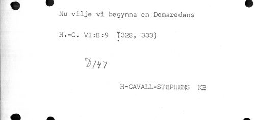//// Nu vilje vi begynna en Domaredans //// H.-C. VI:E:9 T323, 333) //// •f //// i //// 7>/ti //// H-CAVALL-STEPHENS KB ////