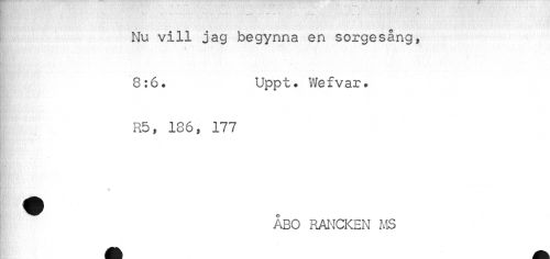 //// ...... //// Nu vill jag begynna en sorgesång, //// i/.. //// ¦ //// 8:6. Uppt. Wefvar. //// R5» 186» 177 //// - //// ÅBO RANCKEN MS ////