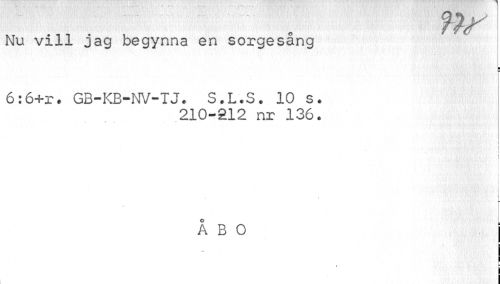 //// " . nr //// Nu vill jag begynna en sorgesång //// ¦ //// 6:6+r. GB-KB-NV-TJ. S.L.S. 10 s. //// 210-212 nr 136. //// i //// i //// i i //// ÅBO I ////
