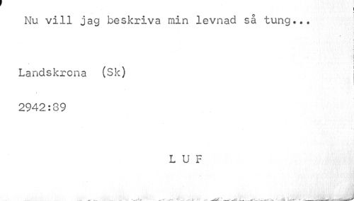 //// I //// Nu vill jag beskriva min levnad så tung..* [ //// i i //// \ //// > //// ä //// i i I //// Landskrona (Sk) //// ! //// 2942:89 //// L U F //// »t ////