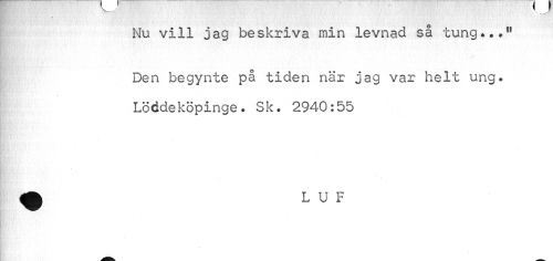 //// Jj Jl'1 I * _ ¦ ' • //// /Nu vill jag beskriva min levnad så tung..." //// Den begynte på tiden när jag var helt ung. Löddeköpinge. Sk. 2940:55 ////