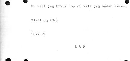 //// Nu vill jag bryta upp nu vill jag hädan fara.. //// Slätthög (Sm) 3077:21 //// LUF ////