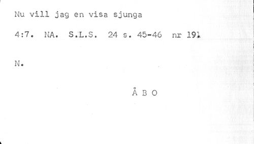 //// Nu vill jag en visa sjunga //// l //// 4:7. NA. S.L.S. 24 s. 45-46 nr 191 //// L //// f J //// N. //// i //// I //// i //// o //// A B O ////