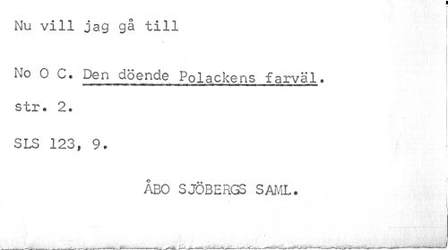 //// I //// Nu vill jag gå till //// s //// » i No O C. Den döende Polackens farväl. //// mw WM—ii 'Mtir —r—tt nim mmwmmrnmm mm\ —n <——B—i> i^n i—mmw» w iiimhhii iw» ———mm //// str //// SLS 123, 9. //// ÅBO SJÖBERGS SAML. //// i i //// ¦ ////