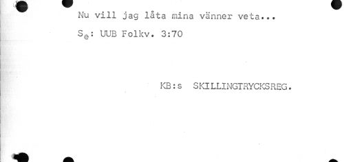 //// Nu vill jag låta mina vänner veta... SQ: UUB Folkv. 3:70 //// KB: s SKILUNGTRYCKSREG. //// » ////