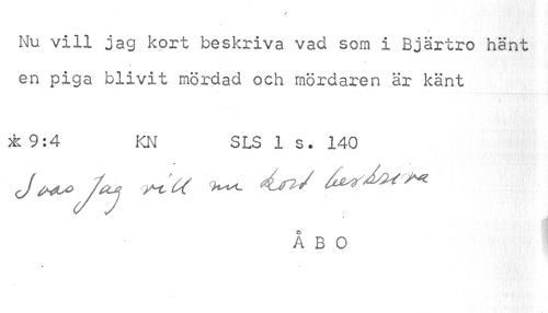 //// Nu vill jag kort beskriva vad som i Bjärtro hänt en piga blivit mördad och mördaren är känt //// ±9:4 KN SLS 1 s. 140 //// ÅBO ////