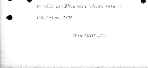 //// Nu vill jag jLåta mina vänner veta — //// * //// ^ UUB Folkv. 3:70 //// KB: s SKILL.-TR. //// Rf; ¦ //// ¦ //// ___m^L____ ////