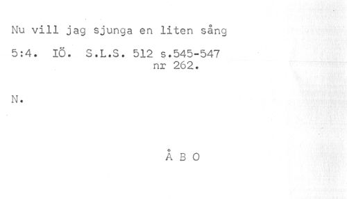 //// Nu vill jag sjunga en liten sång //// 5:4. IÖ. S.L.S. 512 s.545-547 //// nr 262. //// N. //// *> //// Å 3 O ////