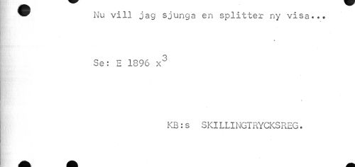 //// ™ Nu vill jag sjunga en splitter ny visa««* //// » //// « //// Se: E 1896 x3 //// KB:s SKILLINGTRYCKSREG. ////