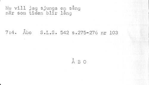 //// Nu vill jag sjunga en sång när som tiden blir lång //// A ....... >.«• .4 V. ./'..o..-;- A //// 7:4. Åbo S.L.S. 542 s.275-276 nr 103 //// Å 3 0 //// »• i r. .•1 ¦ , « s» L - ////