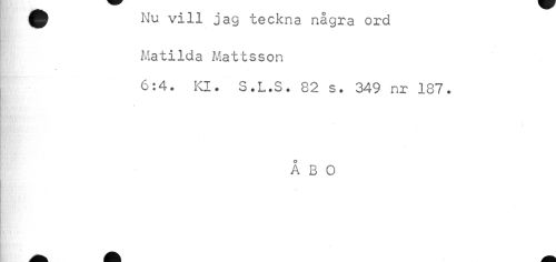 //// åk Nu vill jag teckna några ord //// Matilda Mattsson //// 6:4. Kl. S.L.S. 82 s. 349 nr 187. //// ÅBO ////