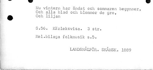 //// Nu vintern har ändat och sommaren begynner, Och alla blad och blommor de gro, //// •Och liljan //// Se56. Kärleksvisa. 3 str. Mel.bilaga folkmusik s.5. //// LANDSMÅLFÖR. SKÅNSK. 1889 //// Bfjfe //// wåt'1 Bi wj*r. //// i' . iii - //// W^^si»»^.-^!nli.Lr f r—> _ __^IrtUiJ ,.4.---.-------^— t*---—---~ -----—---~------- --- lJ-'1-"1 r ^ *------1 ' 'L' ¦ **** ////