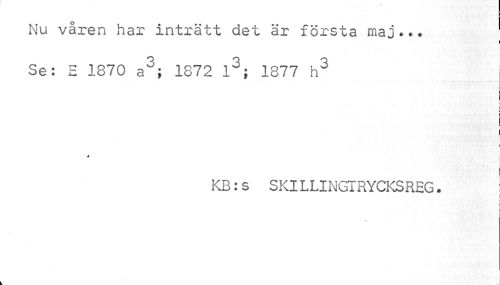 //// Nu våren har inträtt det är första maj *.« ' //// i //// Se: E 1S70 a3; 1872 l3; 1877 h3 //// | //// 4 //// i //// KB:S SKILLINGTRYCKSREG. ! //// c //// r c I //// i //// : ////