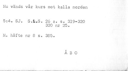 //// Nu vänds vår kurs mot kalla norden //// 5:4. SJ. S.fc.S. 26 a. s. 319-320 //// 320 nr 25. //// N. häfte nr 8 s. 385. //// ÅBO //// ____ __ _____ii._____ _____— --- ------- - - -----^ ////