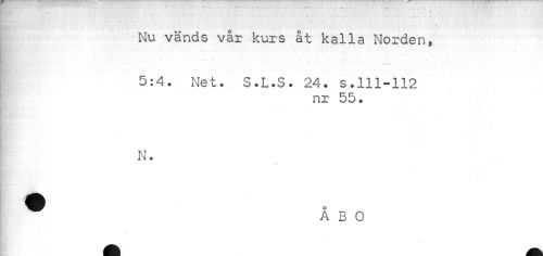 //// • ... //// - - • .. . - //// Nu vänds vår kurs åt kalla Norden, //// » * //// 5:4. Net. S.L.S. 24. s.111-112 //// nr 55. //// N. //// « //// O //// A B 0 ////