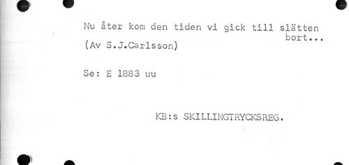 //// Nu åter kom den tiden vi gick till slätten (Av S.J.Carlsson) bort... //// Se: E 1883 uu //// KB:s SKILLINGTRYCKSREG. ////