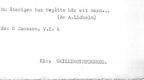 //// Nu återigen har begåtts här ett mord... //// (Av A.Lidholm) //// Se: O Jansson, V.E* b //// KB:s SKILLINGTRYCKSREG. //// « ////