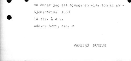 //// Nu ämnar jag att sjunga en visa som är ny -Sjömansvisa 1863 ^ 14 str* a 4 v* //// Add•nr 5222, sid. 3 //// VARBERG MUSEUM ////