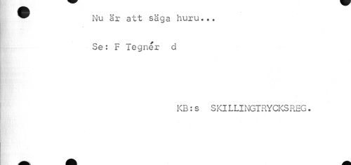 //// ^ Nu är att säga huru*.. //// Se: F Tegner d //// KB:s SKILLINGTRYCKSREG. ////