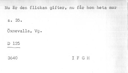 //// Nu är den flickan gifter, nu får hon heta mor s + 3o # //// ¦ i //// ||||iM //// Öxnevalla, Vg. //// D 125 //// ¦ //// 3640 IF G H //// »* ////