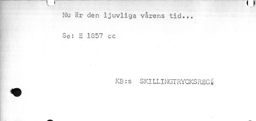 //// • v. //// Nu är den ljuvliga vårens tid... //// * //// /Se: H 1857 cc //// KB: s S Kl LLI NGT RYCKS REG § //// \ ////