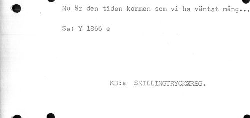 //// 9 tiden kommen som vi ha väntat mång.. //// Se: Y 1866 e //// \ //// KB: s S Kl LLINGTRYCKSREG. ////