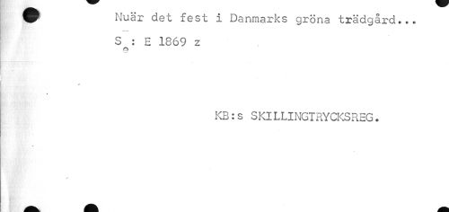 //// W Nuär det fest i Danmarks gröna trädgård... //// s : E 1869 z //// i //// KB:S SKILLINGTRYCKSREG. ////