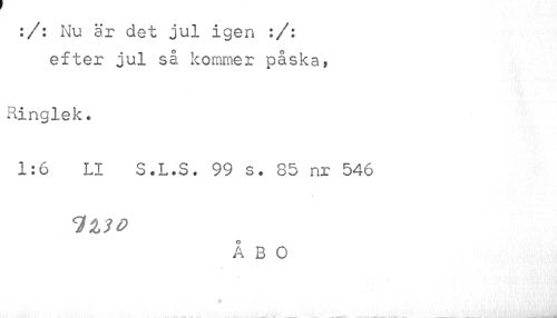 //// :/: Nu är det jul igen :/: efter jul så kommer påska, //// Ringlek« //// 1:6 LI S.L.S, 99 s. 85 nr 546 //// » //// 7130 //// ÅBO ////