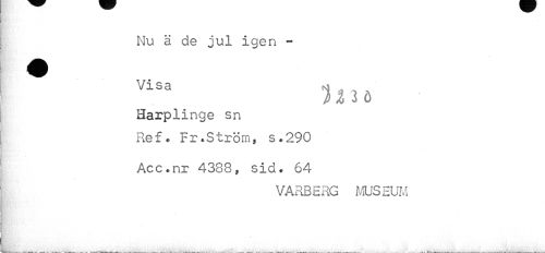 //// Nu ä de jul igen - //// Visa m , , //// Harplinge sn //// Ref. Fr.Ström, s.290 //// Acc.nr 43S8, sid. 64 //// VARBERG MUSEUM ////