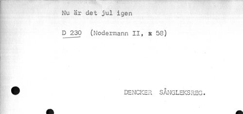 //// Nu är det jul igen D 230 (Nodermann II, s 58) //// • . //// ¦ //// W DENCKER SÅNGLEKSREG. //// BP . //// » ////