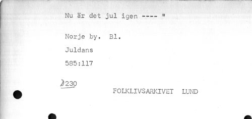 //// Nu är det jul igen ----" //// Norje by. Bl. //// Juldans //// 585:117 //// ^230 //// ^ FOLKLIVSARKIVET LUND ////