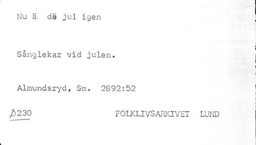 //// g //// Nu ä. da jul igen | //// i ¦ //// i //// Sånglekar vid julen. //// I j //// ? //// i //// i i //// Almundsryd, Sm. 2892:52 £230 FOLKLIVS ARKIVET LUND //// I //// I ////