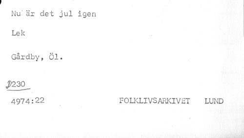 //// Nu' är det jul igen Lek //// Gårdby, Öl. //// 4974:22. FOLKLIVS ARKIVET LUND //// f ////