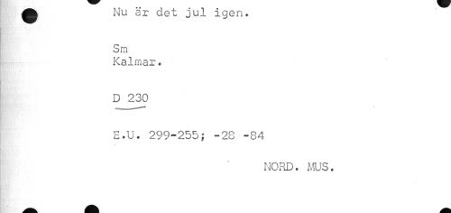 //// A Nu ar det jul igen. //// Sm //// Kalmar. D 230 //// E.U. 2.99-255; -28 -84 //// % //// NORD. MUS. //// M ////