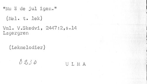 //// "Nu ä de jul igen.11 (Mel. t. lek) //// } //// « //// Vml. V.Skedvi, 2447:2,s.14 j //// Lagergren i //// ! //// ? //// (Lekmelodier) | //// i //// i //// 0&3Ö ULM A ////