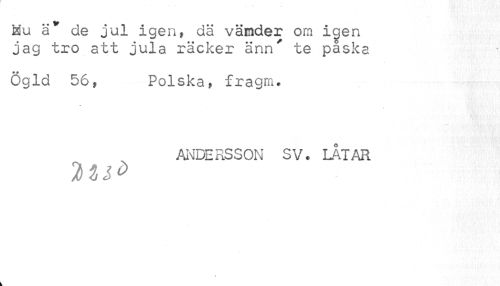 //// Ku ä* de jul igen* dä vämder om igen //// jag tro att jula räcker ann' te paska //// Ögld 56, Polska, fragm. //// ANDERSSON SV. LAT AR //// s ////