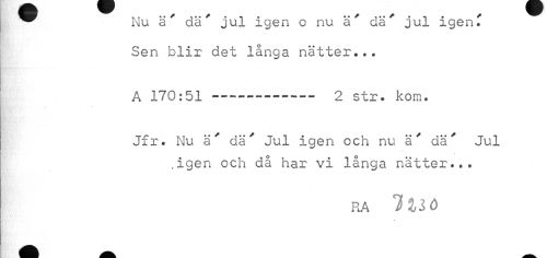 //// ^ Nu ä' dä' jul Igen o nu ä' dä' jul igen T //// Sen blir det långa nätter... //// A 170:51 -—----2 str» kom. //// Jfr. Nu ä' dä' Jul igen och nu ä' dä' Jul ,igen och då har vi långa nätter... //// RA 111 C) ////