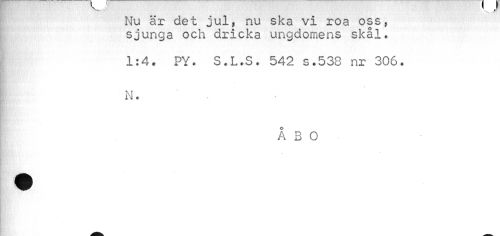 //// Nu är det jul, nu ska vi roa oss, sjunga och dricka ungdomens skål. //// 1:4. PY. S.L.S. 542 s.538 nr 306. //// N. //// ÅBO ////