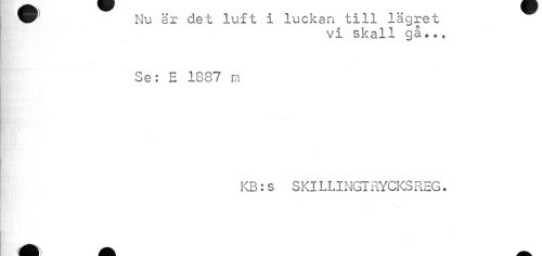 //// Nu är det luft i luckan till lägret //// vi skall gå... //// Se: E 1887 m //// KB:s SKILLINGTRYCKSREG. ////