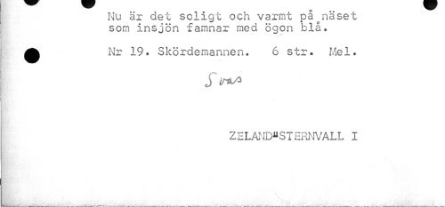 //// Nu är det soligt och varmt påonäset som insjön famnar med ögon blå.. //// -v» //// 0 Nr 19. Skördemannen. 6 str. Mel. //// $ //// ZELANDUST ERNVALL I //// 4 //// ___ ___,__^____„___M___ ////